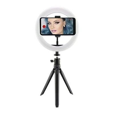 LIGHTWEIGHT AND PRACTICAL: 5.9 inch (150 mm diameter) tabletop light ring that helps the creation of videos, bringing a natural image and greater professionalism. ADAPTABLE AND FUNCTIONAL TRIPOD: The ring light features an adjustable tripod, which allows you to adjust it to different heights for added convenience at your own desk. In addition, the hoop is 360º ADJUSTABLE thanks to its rotating ball head. MOBILE STAND - Designed with a 360º adaptable smartphone holder that ensures recording from different angles to play with different positions and planes. 10 BRIGHTNESS LEVELS & 3 TEMPERATURES: It has 3 light temperatures and 10 brightness levels that can be adapted to always achieve the right lighting. REMOTE INCLUDED: Our tabletop light ring features a connected remote that will allow you to dim the light from your hand by clicking the button you need.