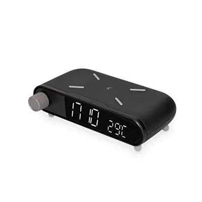 WIRELESS FAST CHARGING: The Alarm Clock Retro Alarm Clock features a wireless fast charging wireless charger (Apple and Android). Fast wireless charging is up to 10W. 9V/2A or higher power supply is recommended. When charging Qi wireless charging compatible devices that do not support fast charging, the charger will adapt the charging to the standard speed (5W). 12/24 HOURS: The Retro Alarm Clock incorporates the 2 time systems (12 hours/24 hours). The user will be able to change it as it suits him best. TEMPERATURE SENSOR: The alarm clock display incorporates room temperature controller in degrees °C and °F, also at the user's choice. BLACK AND WHITE: Available in two colors. The perfect wireless charging solution for any nightstand.
