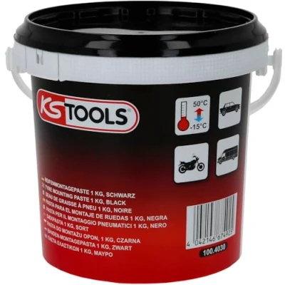 Ideal for mounting and removing tyres on steel or aluminium rims Simply use with a brush For vehicles allows easy assembly and cares for utility rubber, light vehicle and two wheels Quick lubrication bucket and guarantees a tight contact between tyre components: Capacity: 1 kg Prevents the formation of white residues Operating temperature -15 degrees plus 50 degrees Use: Vl - Vul and two wheels, Weight: 1.1 Kilograms, Manufacturer: KS Tools