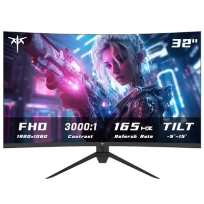 【Clear Image Quality】32 inch curved monitor adopts VA panel and FHD (1920x1080) resolution, provides incredible details and clarity. HDR can upgrade the image to a new level 【Excellent Color】Provides 350cd/m² brightness, 3000:1 dynamic contrast ratio and 122% sRGB color gamut area, making colors richer and tonal transitions smoother 【165Hz Gaming Monitor】Ultra-fast 165Hz refresh rate displays smooth images. Fast response time enhance your gaming experience that handles exhilarating scenes and ultra-fast visual effects 【FreeSync & G-Sync Support】The monitor can minimize screen tearing with FreeSync and G-Sync, allowing you to immerse yourself in the gaming world. Flicker-free and low blue light features reduce eye fatigue 【Flexible Connection】The gaming monitor has versatile interfaces: HDMI 2.0x 2, DisplayPort 1.4 x1 and Earphone, VESA 100x100mm compatible, tilt adjustment -5° to 15°, bring the best gaming experience at the most comfortable angle
