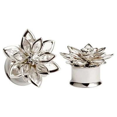 Diameter: 0 g (8 mm) These tunnels with petals are very beautiful but fragile. It can be damaged in the possibilities of long-distance transport. Please contact KUBOOZ if there is any problem with the product. You will receive 1 pair of ear plugs (same size) with gift packaging. Material: artificial stone + 316L surgical steel. Unisex condition Double flared tunnels, easy insertion and removal!