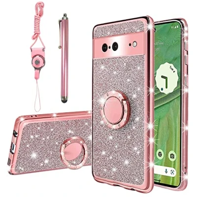 Compatible: Specifically designed for Google Pixel 7 5G 2022 . Please pay attention to the second comparison picture of mobile phone models provided by us, so as to choose the Google Pixel 7 5G case. Material: google 7 case made of soft tpu case. Against shocks, drops, impacts, scratches or dust. provide extreme drop protection and is scratch-resistant. 360° ring kickstand: Pixel 7 5G case unique diamond ring bracket.supports 360 degree rotating and 180 degree folding. Not only provides a comfortable grip, also double as a stand for viewing content in landscape orientation. Precise cutouts: accurate and considerate ports allow freely getting access to all the functions of your phone, simple and convenient. comfortable to hold in hands, well worth having one. Double Layer: The glitter case was made of 2 layers, but ultra-slim. Back sparkles are an insert piece of glitter paper placed inside the case, it avoid from directly touching, so will always stay sparkley and won't get smudged. (There are two holes on the left/right case bottom to hang the lanyard, not rhinestone missing.)