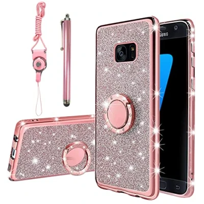 Compatible: Specifically designed for samsung galaxy s7 Edge. Please pay attention to the second comparison picture of mobile phone models provided by us, so as to choose the samsung galaxy s7 Edge case Material: galaxy s7 Edge phone cases Made of great quality electroplate shiny bumper with soft TPU Case. against shocks, drops, impacts, scratches or dust. Comfortable touch feeling, provide extreme drop protection and is scratch-resistant. 360° Ring Kickstand: unique ring kickstand.supports 360 degree rotating and 180 degree folding. Not only Provides a comfortable grip, added protection against drops and scratches,It is olso very fashion. Precise Cutouts: Accurate and considerate ports allow freely getting access to all the functions of your phone, simple and convenient. samsung s8 phone case Comfortable to hold in hands, well worth having one. Double Layer: The glitter case was made of 2 layers, but ultra-slim. Back sparkles are an insert piece of glitter paper placed inside the case, it avoid from directly touching, so will always stay sparkley and won't get smudged. (There are two holes on the left/right case bottom to hang the lanyard, not rhinestone missing.)