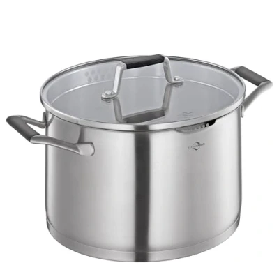 Küchenprofi Cook Bologna Cooking Pot Stainless Steel Casserole with Safety Glass Lid Suitable for Induction Cookers Pouring Spout Fine and Coarse Sieve Multilayer Base Diameter 24 cm