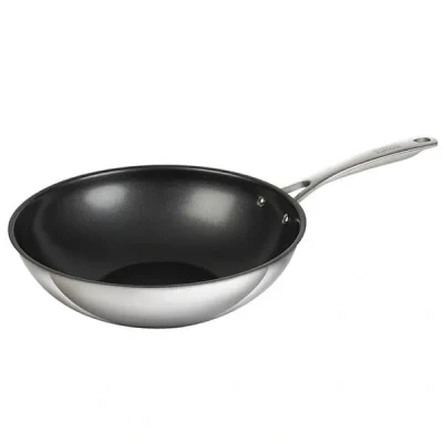 Experience the perfect blend of durability and versatility with the Kuhn Rikon Allround Wok, a 28cm stainless steel masterpiece designed for modern cooking enthusiasts. This wok features an exceptional three-layer non-stick coating reinforced with titanium particles, making it an ideal choice for fast and low-fat stir-frying of meat, vegetables, and fish.