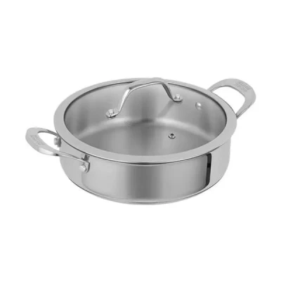 The Kuhn Rikon Allround Shallow Casserole incorporates a fully encapsulated, impact-bonded induction base that guarantees fast and even heating, making it ideal for all types of cooking. Whether you’re using gas, electric, ceramic, or induction hobs, the thick base ensures optimal heat distribution for consistently cooked meals. Moreover, it is oven safe up to 240°C, allowing for versatile cooking techniques, from sautéing to baking.