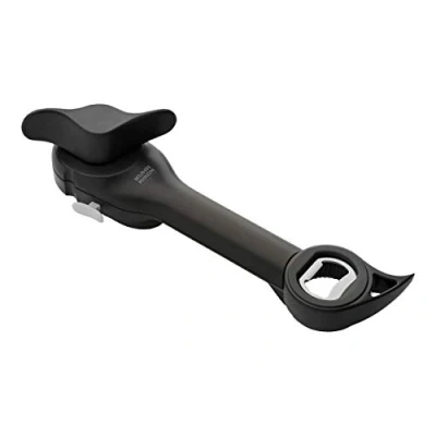 Five separate opener functions within a single gadget - open standard and ring-pull cans/tins, crown-cap (beer-style) bottles, screw-top (PET) bottles and jars with ease Automatically attaches via ‘lock-on’ technology that grips the lid (no need to clamp it on) and long handle provides extra grip/leverage Designed to be safe (opens cans/tins without cutting the metal, which leaves no sharp edges on the rim or lid) and to maximise hygiene (opener doesn’t make contact with the contents of the can/tin) Lids are removed via mini-pliers/pincers once opened (no need to handle) - watch the video to see the Auto Safety Master Opener in action Easy to clean (wipe with a damp cloth; don’t put in the dishwasher). Dimensions: 9 (L) x 2.75 (W) x 2. 75 (H) inches