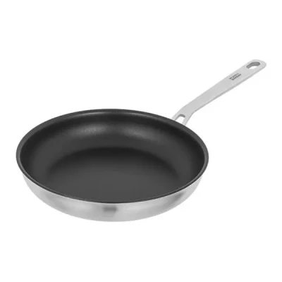 Perfect heat. Everywhere.Discover perfect frying with the coated CULINARY FIVEPLY frying pan. Ideal for gently frying vegetables, meat/fish, egg dishes and potatoes. Delicious sauces and crêpes also succeed perfectly in this frying pan.Thanks to its high-quality 5-ply multi-layer material and a material thickness of 3.2 mm, the coated CULINARY FIVEPLY frying pan is extremely robust and durable. The special combination of different alloys (stainless steel - aluminium - stainless steel) not only concentrates the heat in one place, but distributes it evenly over the entire surface right to the edge. This means that your food is also heated evenly from the sides.This perfect heat distribution guarantees consistent roasting and cooking results. Pieces of meat become crispy on the outside and stay nice and juicy on the inside. Sauce dishes are optimally heated up to the edge and kept warm.The high-quality 3-layer non-stick coating also ensures that nothing sticks and that you only need a little fat for frying.The ergonomic stainless steel handle stays cool even at high temperatures and is therefore very comfortable to use. The closed rim without sharp edges makes it easier to pour sauces, reduces the risk of injury and ensures perfect presentation of your dishes. 5-ply material (stainless steel - 3 layers of aluminium - stainless steel) Very good and even heat distribution up to the rim High-quality 3-layer PTFE coating Closed rim - suitable for dishwashers (no sharp edges) High-quality, clean-lined, timeless design "Stay Cool" handles for comfortable handling Ideal for gentle frying Quick and easy to clean (no rivets, no attached base) Suitable for all hob types, including induction Oven-safe up to 240° ( caution: handle can get hot) Available in various sizes