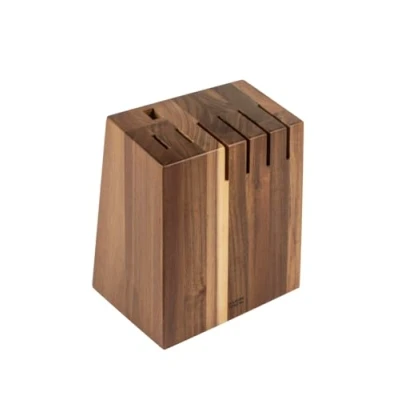 Generous Capacity – Holds up to 4 large knives (chef’s, carving, bread, santoku), 2 small knives (paring, utility) and one honing steel for a complete storage solution. Safe & Organised Knife Storage – Designed to securely hold your CULINARY FORGED knives, this acacia wood block protects blades and keeps them within easy reach on the worktop. Premium Acacia Wood Construction – Crafted from durable, FSC-certified acacia wood with a natural grain pattern that makes every block a unique and elegant kitchen feature. Smart, Space-Saving Design – The slightly inclined stand fits neatly under wall units while providing easy access to your favourite knives and sharpening steel. Stable & Practical Details – Non-slip silicone feet keep the block firmly in place, while front notches make inserting and removing knives smooth and safe.
