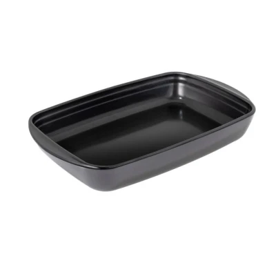 Versatile rectangular dishes that are great for bakes, gratins and roasts. These dishes can be used in the oven, microwave, fridge and freezer and as serving dishes at the table. Use for a wide variety of cooking, such as roasting meat or vegetables, making lasagnes, Yorkshire puddings or brownies. The tough, borosilicate glass has a non-stick coating so it performs brilliantly with little or no fat and it’s easy to clean. The versatiliy brings many advantages including saving on washing up! You can cook ahead, say a lasagne, store in the fridge ir freezer then reheat another day and take it to the table – all in the same dish. You can leave leftovers in the dish, store it in the fridge (with a silicone, foil or film lid) then reheat in the same dish. There are three sizes to choose from, the smallest will suit one or two people while the largest will feed a crowd. Small – 23cm x 15cm x 4cm / 0.8LMedium – 32cm x 20cm x 5cm / 2.0LLarge – 35cm x 22cm x 5cm / 2.6L High quality, tough, borosilicate glass. Durable non-stick surface for low-fat cooking and easy cleaning. Versatile as it can be used in the oven, microwave, fridge and freezer and at the table. Resistant to thermal shock – (extreme changes of temperature). Integral handles for easy lifting. Easy to clean by hand or in the dishwasher. Choice of three sizes (see above). Developed and manufactured in Europe.