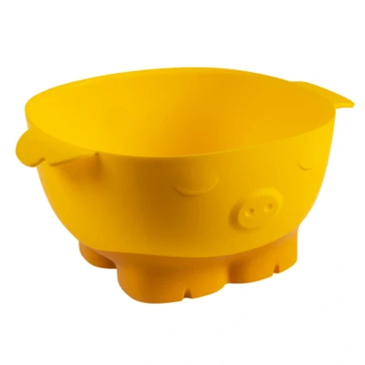 Kuhn Rikon Kinderkitchen Kids Mixing Bowl, Pig, 9.8" x 9.1" 4.3", Yellow Child Friendly Kitchen Tools for Real Cooking