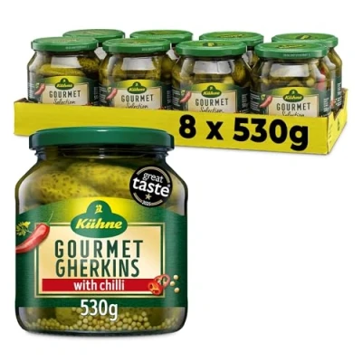 Kuhne Gherkins Gourmet Selection with Herbs, 530g, (Pack of 8)