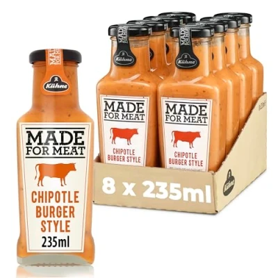 The mixture of smoked chillies and fine tart pickled relish gives our Chipotle Burger Sauce its unmistakable spiciness while pieces of red onion provide the right seasoning The Chipotle Burger Style not only rounds out street food, but also tastes fantastic with barbecue classics No artifical colours or preservatives vegetarian friendly and no artificial flavours 8 x 235ml