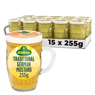Kuhne Traditional Smooth & Mild German Mustard in Beer Mug Glass Jar 250 ml x 1