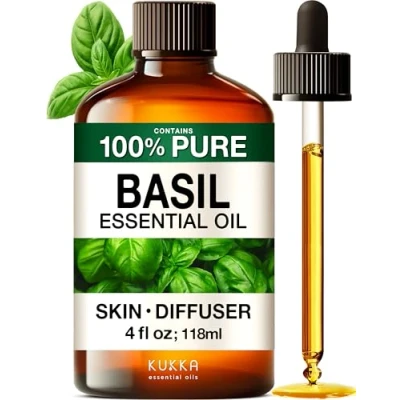 Kukka Basil Essential Oil for Diffusers Skin Aromatherapy, Skin, Fragrance, Candles & Soaps 100% Natural (118 ml)