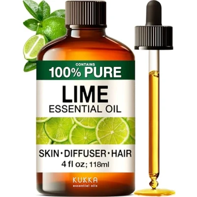 Kukka Lime Essential Oil for Skin 100% Natural Aromatherapy Diffuser, Hair, Candles & Soap Making (118ml)