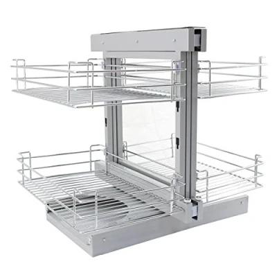 Each basket boasts a robust capacity of 15-20kg, providing ample room for storing a variety of kitchen items such as pots, pans, and other cooking essentials. The overall design emphasizes durability, as it is constructed from high-quality stainless steel, ensuring longevity and resistance to wear over time.