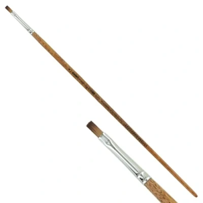 The acrylic and oil painting brush from Kum has been handmade in Germany and offers outstanding quality in size 4 for precise painting techniques The brush fibres are characterised by a high colour absorption and an ideally shaped brush tip that allows precise work even with the smallest details The sturdy and robust fibres are ideal for working with viscous media such as oil and acrylic paints as they allow easier and targeted colour distribution The long handle of the brush provides comfortable handling when painting on the easel, provides more freedom of movement and allows comfortable working over extended periods of time The brush is easy to clean, which increases its longevity and simplifies care after use