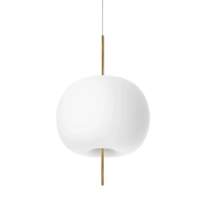 Lamp MastersKushi 33 Pendant Brass is an extraordinary lamp that brings to mind candy apples and marshmallows on sticks. First and foremost, the lamp features a big blown glass lampshade, which emits a nice, diffuse, glare-free glow. The lampshade’s swelling shape stands in beautiful contrast to the thin frame, which gives the lamp an organic shape. This combination of shape and functionality radiates calm and comfort—exactly what you need when the sun sets on a long day. Kushi is a great fit for design-oriented homes, stylish offices, and other public spaces. Kushi Ceiling Lamp comes in three different sizes and three wonderful colours. All models are part of the Kushi collection from Kundalini, and they all feature the same light design and pure colours, making them easy to combine as you see fit.