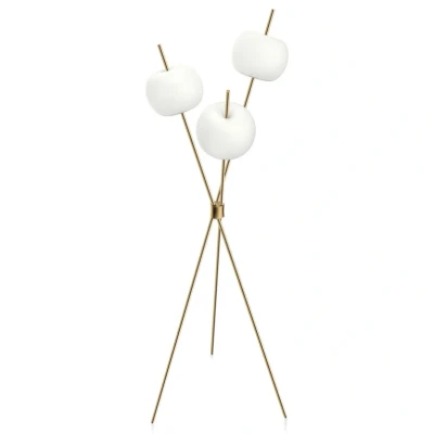 Lamp MastersKushi Floor Lamp Brass has an elegant design thanks to the eye-catching contrast between the frame and the lampshades. Whereas the frame consists of colourful metal spread into three thin lamp legs that come together in the centre, the lampshades swell in separate directions with their round shapes in colourful glass. This design makes the lamp look like three cotton twigs and ensures an organic touch that bathes the room in a relaxed atmosphere. The three LED light sources create a comfortable, glare-free warm white light. The brains behind this fully realised design are the Italian design duo Alberto Saggia and Valerio Sommella, and the lamp was created for the Milanese brand Kundalini, which places great emphasis on uniting creative design with comfortable lighting. Kushi Floor Lamp comes in three gorgeous colours. It’s part of a wide range of Kushi lamps, all of which are characterised by their light design and neat colours.