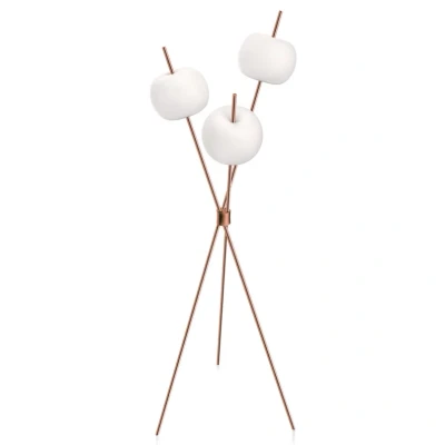 Lamp MastersKushi Floor Lamp Copper has an elegant design thanks to the eye-catching contrast between the frame and the lampshades. Whereas the frame consists of colourful metal spread into three thin lamp legs that come together in the centre, the lampshades swell in separate directions with their round shapes in colourful glass. This design makes the lamp look like three cotton twigs and ensures an organic touch that bathes the room in a relaxed atmosphere. The three LED light sources create a comfortable, glare-free warm white light. The brains behind this fully realised design are the Italian design duo Alberto Saggia and Valerio Sommella, and the lamp was created for the Milanese brand Kundalini, which places great emphasis on uniting creative design with comfortable lighting. Kushi Floor Lamp comes in three gorgeous colours. It’s part of a wide range of Kushi lamps, all of which are characterised by their light design and neat colours.