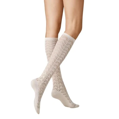 Fashionable crochet structure Reinforced toe and heel Material composition: 65% cotton, 35% polyamide Care instructions: gentle cycle 30°C, do not bleach, do not tumble dry, do not iron, do not dry clean Amazon title: KUNERT Ajour Fashion Women's Knee Socks