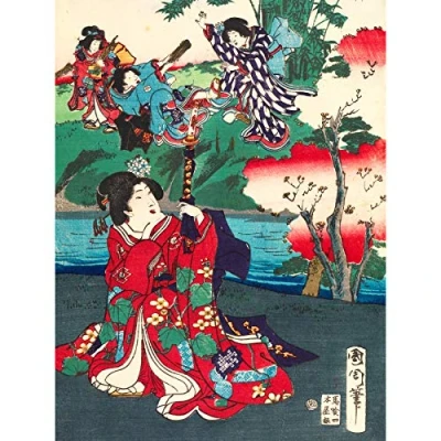 Kunichika Tale Genji Women Japanese Painting Premium Wall Art Canvas Print 18X24 Inch