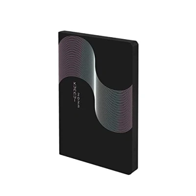 2023 Dark Twist Year Planner. Suitable from January to December 2023. Join the KUNNUI universe 224 pages in indoor weekly view. Horizontal arrangement of days with polka dot pattern. From Monday to Wednesday on an odd side and from Thursday to Sunday on a pair of pages. Format A5: 15 x 21 cm. The dimensions are ideal for convenient organisation. High quality paper (100g) Soft bonded leather cover and flexible binding. 360 Opening Black Edges.Holographic Engraving.Includes note sheets, two tabs and monthly planner per month.