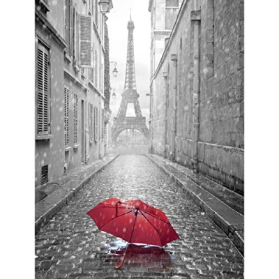Kunstdruck Eiffelturm in Paris, roter Regenschirm