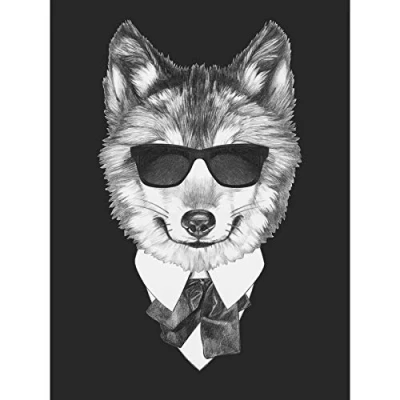 Kunstdruck mit Fliege und Wolf Sonnenbrille, Wanddekoration