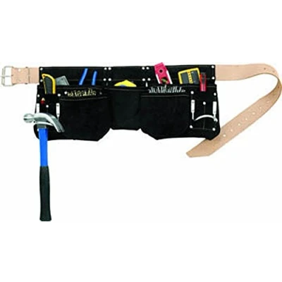 Water repellant split grain leather Deep centre pockets Heavy steel hammer holders Heavy-duty belt Double riveted at all stress points