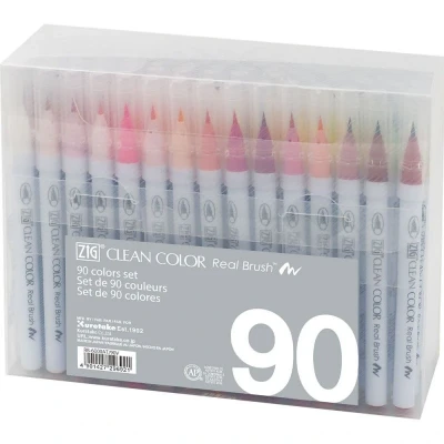 Kuretake Zig Clean Color Real Brush 90 Colors Set, AP Certified, Flexible Tip, Professional Quality, Odorless, Xylene Free, Easy to Create Narrow and Wide Lines, Made in Japan