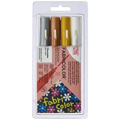 Kuretake Zig Fabricolor 4 Color Set, Metallic Colours, Medium