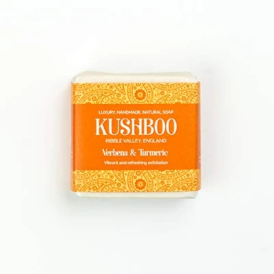 This luxurious bar contains vibrant turmeric with its anti-inflammatory benefits to help clear acne and calm the skin. By removing dead cells it can rejuvenate the skin, leaving it fresh and glowing. Turmeric contains antioxidants which can protect the skin from damage, slowing the signs of ageing Deliciously scented with our unique blend of pure Verbena essential oil, this soap bar brings your the aroma of a spa in your home. 100% Natural, Vegan, Made in England, Suitable for all skin types All Kushboo products are free from Sodium Lauryl Sulphate, Parabens, Preservatives or chemicals. We are proud to be Plastic Free and Cruelty Free. We use ethically sourced ingredients including RSPO Certified Sustainable Palm Oil Kushboo Mission Statement - We believe soap is dignity - a basic commodity that should be available to all. For every soap we sell, we donate another to Food Banks and the homelessness, helping vulnerable people get back on their feet Order any 6 soaps and get a £10 saving in your basket. Our soaps are suitable for all skin types