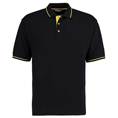 Kustom Kit Mens Short Sleeve Polo Shirts, Black/Yellow, XX Large. KK606