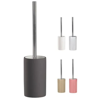 Rubberised Porcelain Toilet Brush & Holder - Matt Finish Slight Rubber Texture to the Brush Holder Exterior - softer look. Hard Porcelain White Interior - Open Top - Half Metal Disk between Handle and Brush Head Elegant Design from a Quality German Manufacturer Size Approx : 85mm Diameter x 390mm High, Weight: 1.76 Pounds, Manufacturer: KW