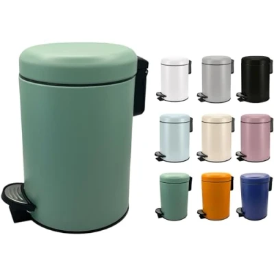 Metal Bin - Soft Sheen Finish - Range of Subtle Soft Shade Colours Overall Size 23cm Wide (Incl Pedal) x 25cm High (Bin 16.8cm Diameter) Removable Plastic Inner Bucket - Handles on both Bin and Bucket Perfect for Hygenic Waste Disposal in Compact Places Quality product from a German Manufacturer