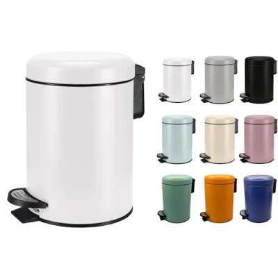 Metal Bin - Soft Sheen Finish - Range of Subtle Soft Shade Colours Overall Size 23cm Wide (Incl Pedal) x 25cm High (Bin 16.8cm Diameter) Removable Plastic Inner Bucket - Handles on both Bin and Bucket Perfect for Hygenic Waste Disposal in Compact Places Quality product from a German Manufacturer