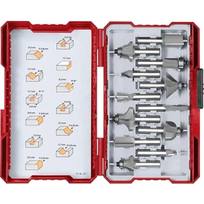 kwb 12 Piece Cutter Set Ø 8 Mm, Carbide Tipped With Precise Clamping Shank and Optimised Cutting Geometry for An Exact Milling Pattern