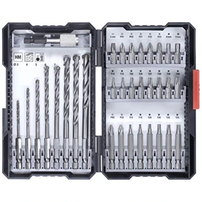 kwb 33 piece Hex Shank Box with 8 HM Stone Drill Bits and PH, PZ, TX Set Bit Holder