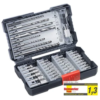 kwb 39 Piece Drill Box with Hex Shank, HSS Metal Drills, Stone and Assorted Bits (PH, PZ, TX), Including Countersink, Bit Holder, Socket