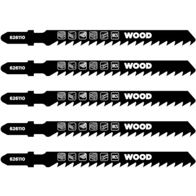 kwb 5x jigsaw blades for wood, extra coarse, 100 mm (for hardwood, softwood, plastic, chipboard)