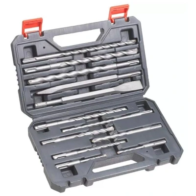 General description Einhell's SDS+ Drill & Chisel Set includes 12 pieces, making it ideal for hammer drills and suitable for various drilling and renovation tasks. This comprehensive set contains 10 drill bits and 2 chisels, designed for durability and efficiency. Technical specifications Material: Rugged CR steel Hardness: HRC 50+3 Type: SDS Plus shafts Quantity: 12 pieces (10 drill bits and 2 chisels) Compatibility and accessories Fits all drill hammers with a turn-stop and SDS Plus chuck Usage Suitable for drilling into masonry Includes flat and pointed chisels for light demolition work Other information Supplied in a convenient storage case