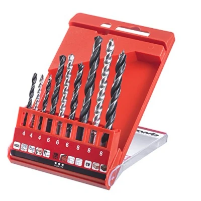 Combi drill set with HSS metal drill, HM drill for stone and wood drill for different wood types Spiral drill set with 3x HSS drills, HM drills and wood drills in diameter sizes: 4, 6, 8 Metal drill, stone drill and wood drill cassette, is suitable for alloyed and unalloyed steel, gray cast iron, NE metals, hard plastics, stone, masonry, brick, softwood, hardwood, construction wood u. Ä. HSS Metal drills are roller potrid and vapor - the stone drills have a carbide tip Ideal drill assortment for household, hobby workshop or do-it-yourself home improvement (article number: 420400), Manufacturer: kwb