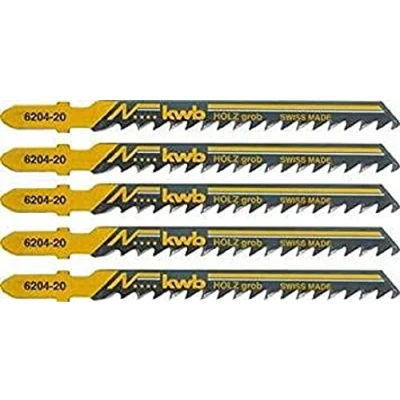 EXTRADICK BLADE: The extra-thick blade thickness of the jigsaw blade set is suitable for particularly straight and angular cutting. FLEXIBLE HCS STEEL: Due to the production from HCS carbon steel, there is a low risk of breakage when working with the jigsaw blades for wood. LONG-LASTING SHARPNESS: Made of hardened carbon, the jigsaw blades with T-shaft have a long-lasting sharpness. WITH PLUNGING TEETH: For effortless plunging into workpieces, the kwb jigsaw blades have a plunging tooth. BLACK PAINT: The black paint on the saw blades ensures optimum corrosion protection during storage. WITH SINGLE-CAM SHAFT: With the single-cam shaft (T-shaft), the jigsaw blades for wood have the most common holder and therefore fit in many commercially available jigsaws., Weight: 0.110231131 pounds, Manufacturer: KWB