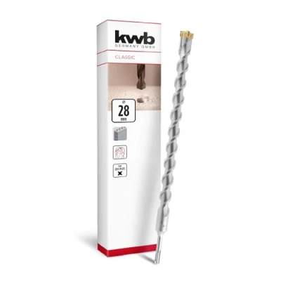 Optimised drilling performance - Thanks to the innovative design and first-class materials, the masonry drill bit ensures efficient cutting and facilitates drilling in hard materials such as reinforced concrete. SDS Plus plug-in system - Thanks to the SDS Plus shank, the kwb SDS Plus hammer drill bit can be changed quickly and without tools, making it compatible with all standard rotary hammers. Milled double helix - The innovative milled double helix ensures fast removal of drilling dust and reduced friction, which extends the service life of the drill bit and increases the drilling speed. HM X Cross Point Design - The HM X Cross Point Design enables precise centring and clean bores for excellent wear resistance and robustness for professional applications. Durability - The combination of robust 40Cr steel and high-hardness YG9X carbide plate ensures exceptional durability and reliability of the hammer drill bit under the toughest conditions. Plate geometry - The special plate geometry protects against canting and ensures precise drilling results, making the work even more accurate. Versatile - This drill bit is ideal for effective drilling in concrete, stone and masonry, making it extremely versatile., Manufacturer: kwb