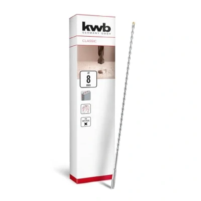 Optimised drilling performance - Thanks to the innovative design and first-class materials, the masonry drill bit ensures efficient cutting and facilitates drilling in hard materials such as reinforced concrete. SDS Plus plug-in system - Thanks to the SDS Plus shank, the kwb SDS Plus hammer drill bit can be changed quickly and without tools, making it compatible with all standard rotary hammers. Milled double helix - The innovative milled double helix ensures fast removal of drilling dust and reduced friction, which extends the service life of the drill bit and increases the drilling speed. HM X Cross Point Design - The HM X Cross Point Design enables precise centring and clean bores for excellent wear resistance and robustness for professional applications. Durability - The combination of robust 40Cr steel and high-hardness YG9X carbide plate ensures exceptional durability and reliability of the hammer drill bit under the toughest conditions. Plate geometry - The special plate geometry protects against canting and ensures precise drilling results, making the work even more accurate. Versatile - This drill bit is ideal for effective drilling in concrete, stone and masonry, making it extremely versatile., Manufacturer: kwb
