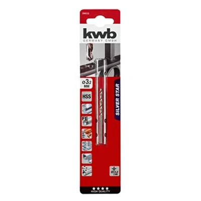 EFFICIENT DRILLING: Precision-engineered Ø3.2 mm HSS metal drill bit with special point geometry for up to 40% faster drilling and 50% less pressure. PRECISION AND ACCURACY: Complies with DIN 338 standards for exceptional boring accuracy; suitable for alloyed and unalloyed steel, cast steel, sintered iron, non-ferrous metals, and hard plastics. INDUSTRY GRADE QUALITY: Designed for steel, these cylindrical spiral drills are precisely crafted and conform to Type N standards. MINIMAL FRICTION: Silver spiral drill features premium surface treatment for reduced friction during heavy loads. SELF-CENTERING DESIGN: Equipped with a 135° split point angle and cross-grind as per DIN 1412 C, ensuring self-centering and minimal cutting forces., Weight: 0.02425084882 pounds, Manufacturer: KWB
