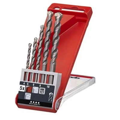 Hammerfest drilling set in diameter sizes: 4, 5, 6, 8 and 10 mm, according to ISO 5468 Stone drill with high temperature soldered carbide cutting edge and chip-molded spiral for good drilling flour transport Carbide-equipped drill set, perfect for wall plant, nature stone, art stone, lime sandstone and Ä. Impact drilling spiral drill for all common punching and rotary drilling machines KWB wall drill set, perfect for the home improvement (article number: 039500), Manufacturer: KWB