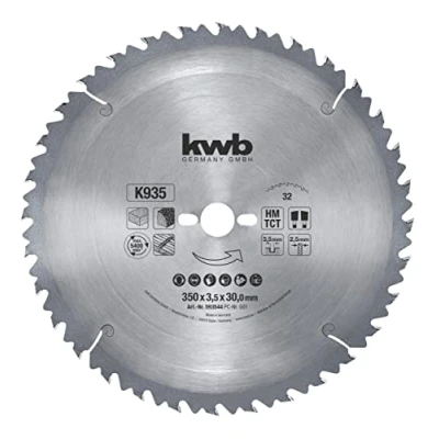 EXTRA FOR LONG CUTS: the deflectors placed behind the saw teeth limit the chip removal on the workpiece, which prevents the saw blade from slipping too quickly and thus greatly increases work safety. CHANGING TOOTH: alternately mounted carbide teeth with alternate grinding ensure optimum free cutting and chip removal. RE-SHARPENABLE: "Made in Germany" quality and the best carbide allow the circular saw blade to be resharpened 6 - 8 times with proper use. HARD METAL TEETH: the teeth made of tungsten carbide are particularly abrasion-resistant and are individually applied to the master blade to ensure quality. MATERIAL SUITABILITY: the precise blade cuts softwood and hardwood, blockboard, chipboard, glulam, MDF, laminate and construction timber with ease., Weight: 2.20462262 pounds, Manufacturer: KWB